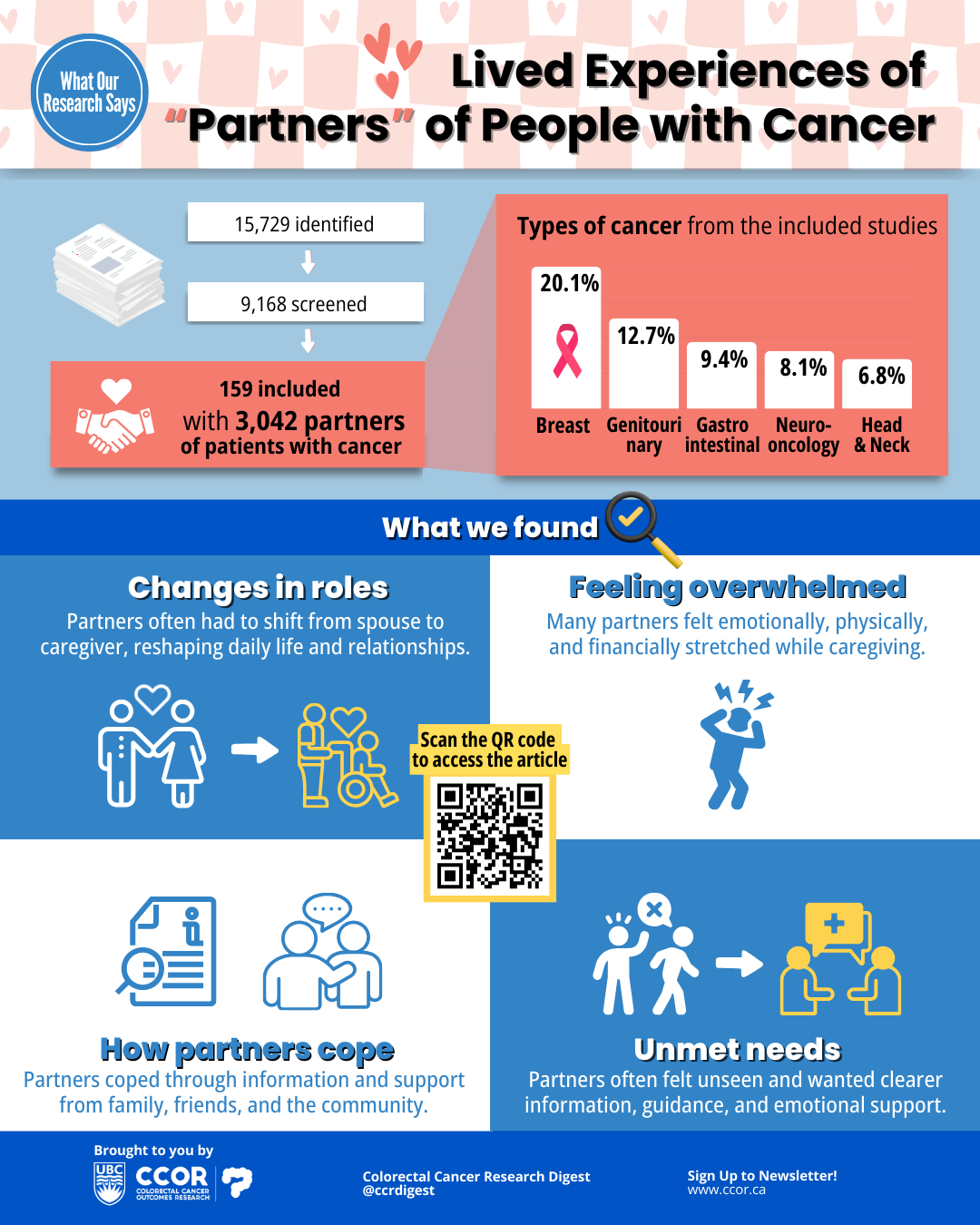 We didn’t want to stop at synthesizing research — we wanted to make it useful. Since coping was a major theme, we created the CCOR Guide for Partners of Patients with Cancer to offer clear, evidence-informed support. We hope this guide is helpful, and we encourage you to share it with partners in your community who may benefit from it.