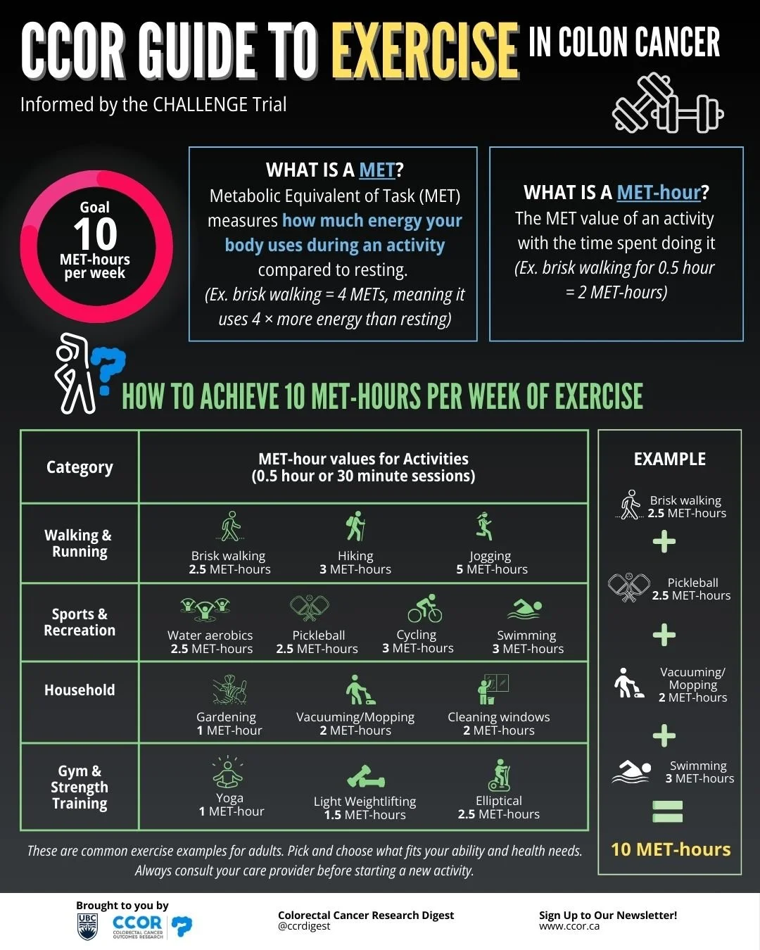 A key aspect of the CHALLENGE trial exercise program was to increase exercise by at least 10 MET-hours per week. But what is a MET?